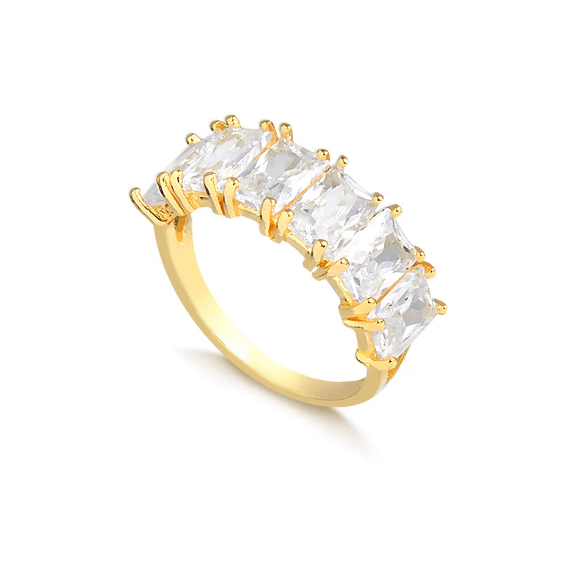 ANEL MEIA ALIANCA BAGUETES CRISTAL BANHADO A OURO 18K