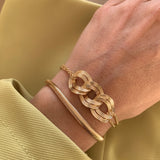 Sofisticada, versátil e absolutamente atemporal. Esta pulseira com 6 mm de espessura é o acessório que faltava para elevar o nível do seu pulseirismo. Seu design liso e maleável se ajusta perfeitamente ao pulso, garantindo um visual polido tanto para o dia a dia quanto para ocasiões especiais.