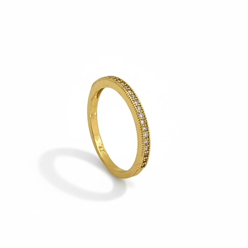 ANEL APARADOR FILETE CRAVEJADO BANHADO A OURO 18K