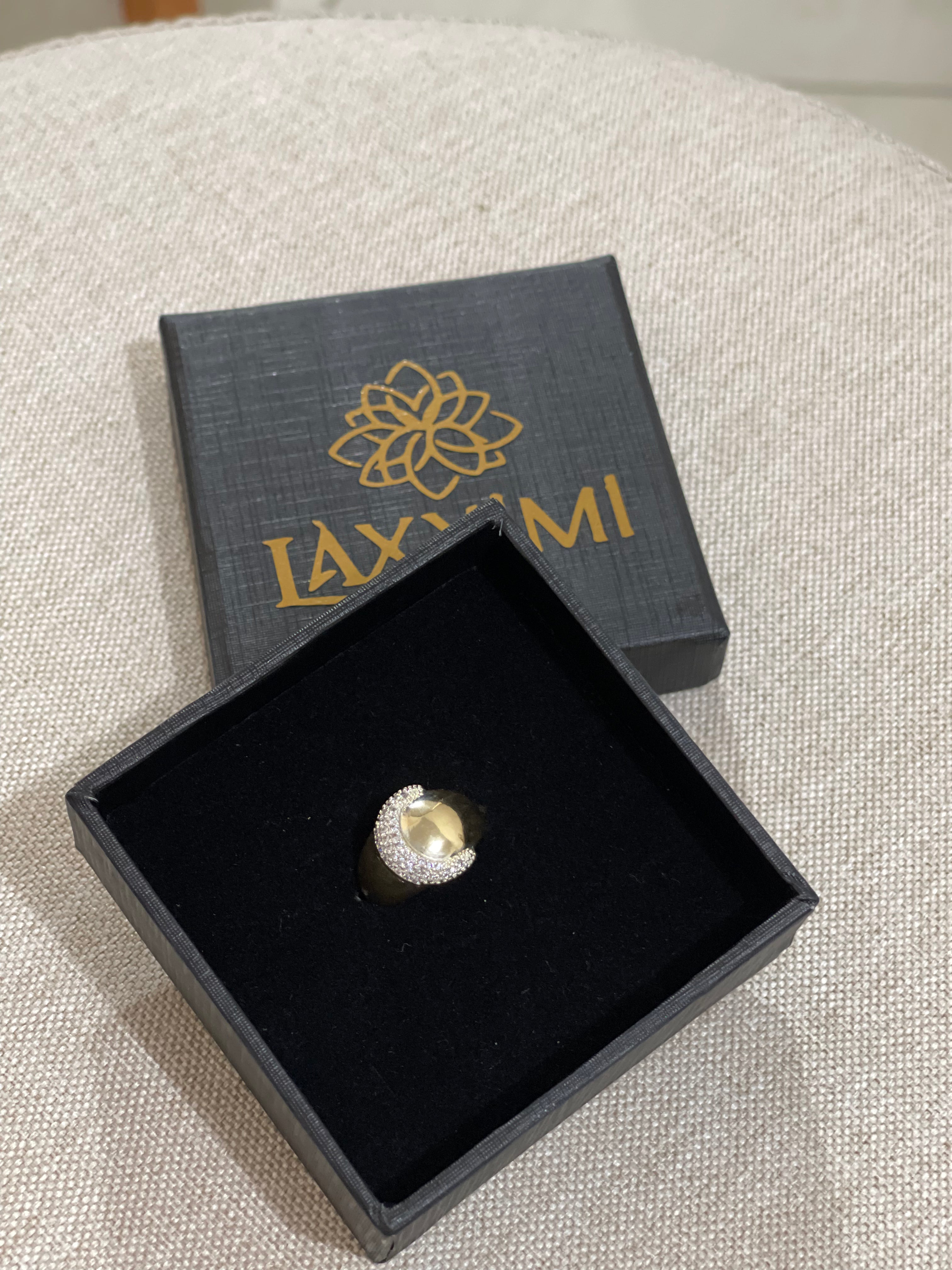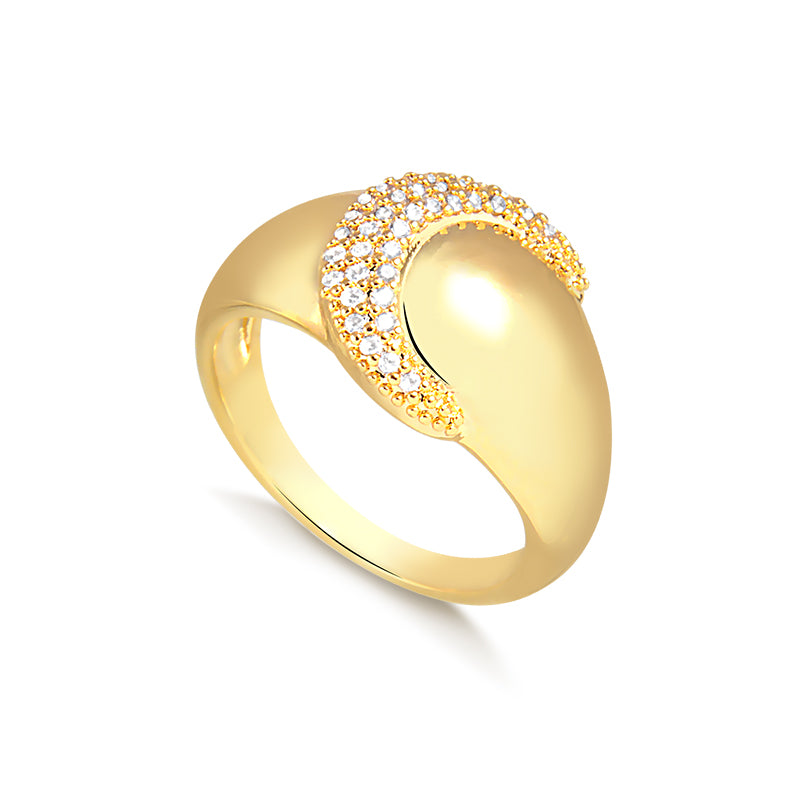 Anel abaulado cravejado/ Microzircônias Banhando a ouro 18K