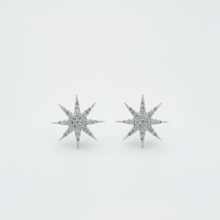 Brinco Estrela Guia Cravejado: Confeccionado em Prata 925, uma joia que garante impacto imediato. Com um design que remete à estrela polar, este brinco é totalmente cravejado em microzircônias de alto brilho, perfeito para quem busca um acessório sofisticado e que se destaque na orelha. Ideal para elevar qualquer look, do casual ao festivo.
