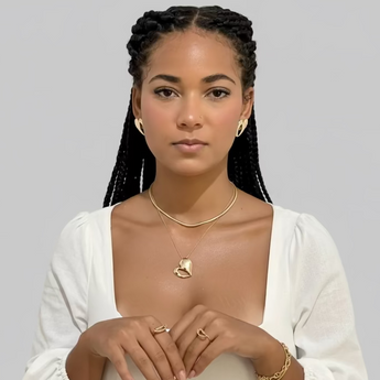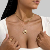 A harmonia perfeita entre o clássico e o contemporâneo. Este colar apresenta um pingente com design orgânico e abaulado, que traz o formato de um coração estilizado com curvas suaves e modernas. É a peça ideal para quem busca um acessório marcante, mas com a leveza de uma joia de alta chapelaria.