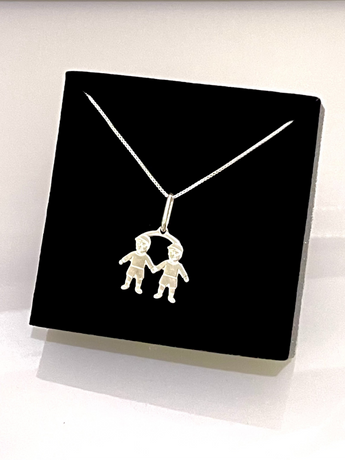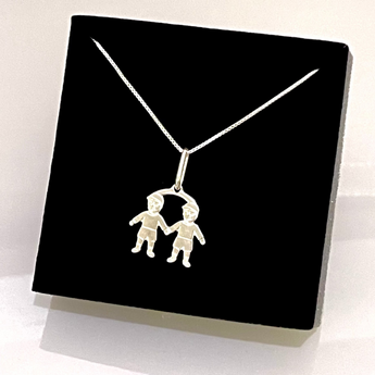 Este encantador pingente em Prata 925 apresenta dois meninos de mãos dadas, simbolizando a amizade, o carinho e a cumplicidade que só irmãos podem ter. Uma peça que toca o coração e adiciona um toque de ternura ao seu dia a dia.