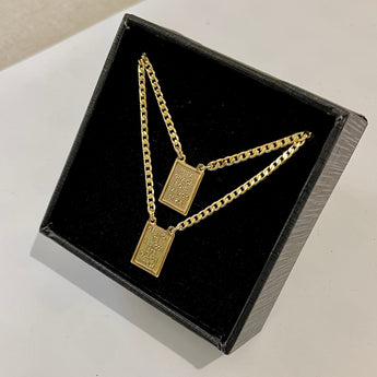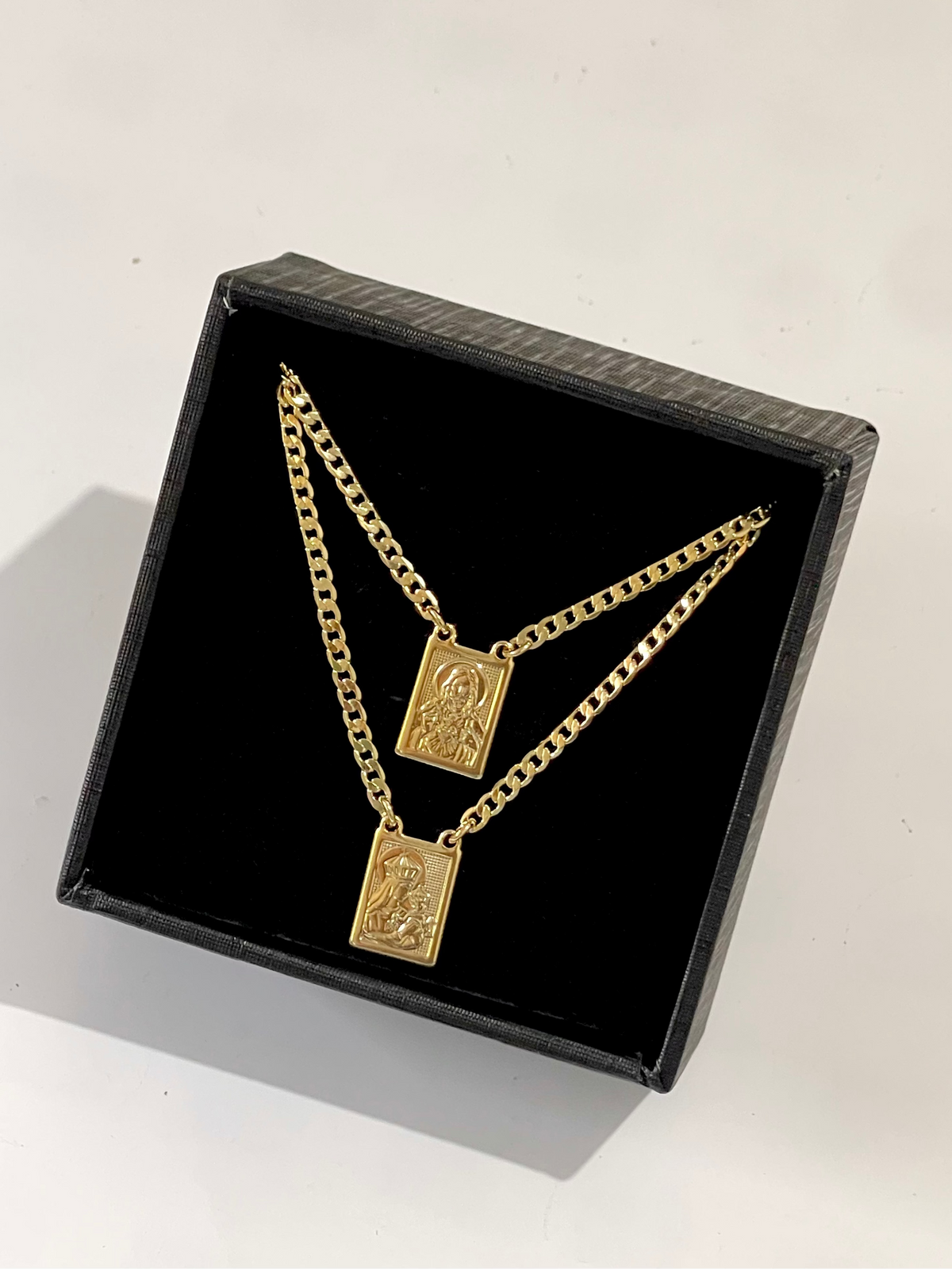 ESCAPULÁRIO PROTEÇÃO E FÉ BANHADO A OURO 18K.