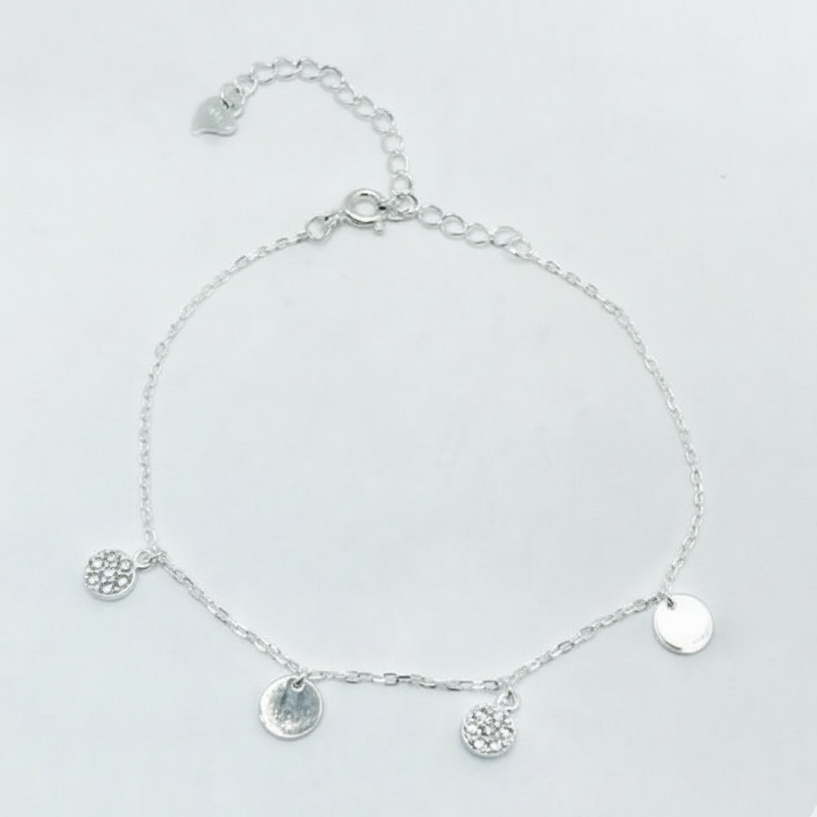 A elegância está nos detalhes. Esta pulseira em Prata 925 legítima traz um design fluido com pingentes circulares que alternam entre o brilho liso e o cravejado, garantindo um movimento encantador no pulso. Com 16 cm de comprimento e um extensor generoso de 5 cm, ela oferece o ajuste perfeito para qualquer biotipo, unindo o luxo da joalheria clássica à versatilidade moderna. Uma peça hipoalergênica e de brilho eterno, ideal para brilhar sozinha ou em composições.